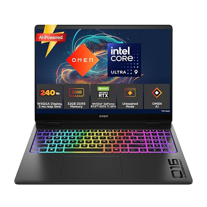 HP Omen 16 Max,Intel Ultra 9 275HX,12GB NVIDIA RTX 5070 Gaming AI Laptop (32GB DDR5,1TB SSD) 60-240 Hz,3Ms,IPS,WQXGA,16”/40.6Cm,Win11,M365 Basic (1year), Office24,Black,2.75Kg,RGB Backlit,ah0190TX WITH WQXGA Display